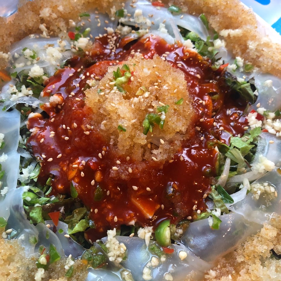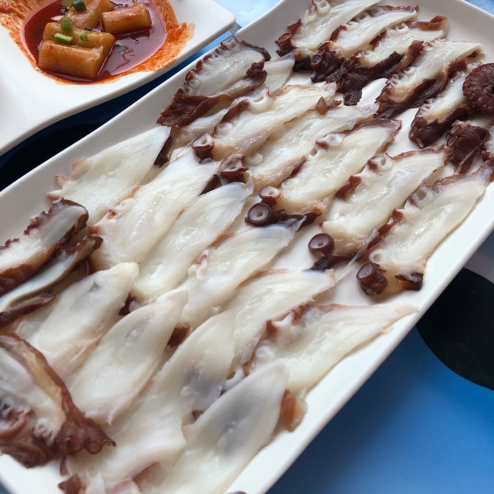 다음 주문한 메뉴는 포뜬 산 오징어입니다.