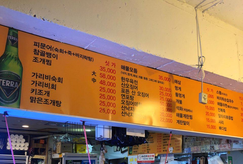 이렇게 벽면에 메뉴가 적혀있습니다.