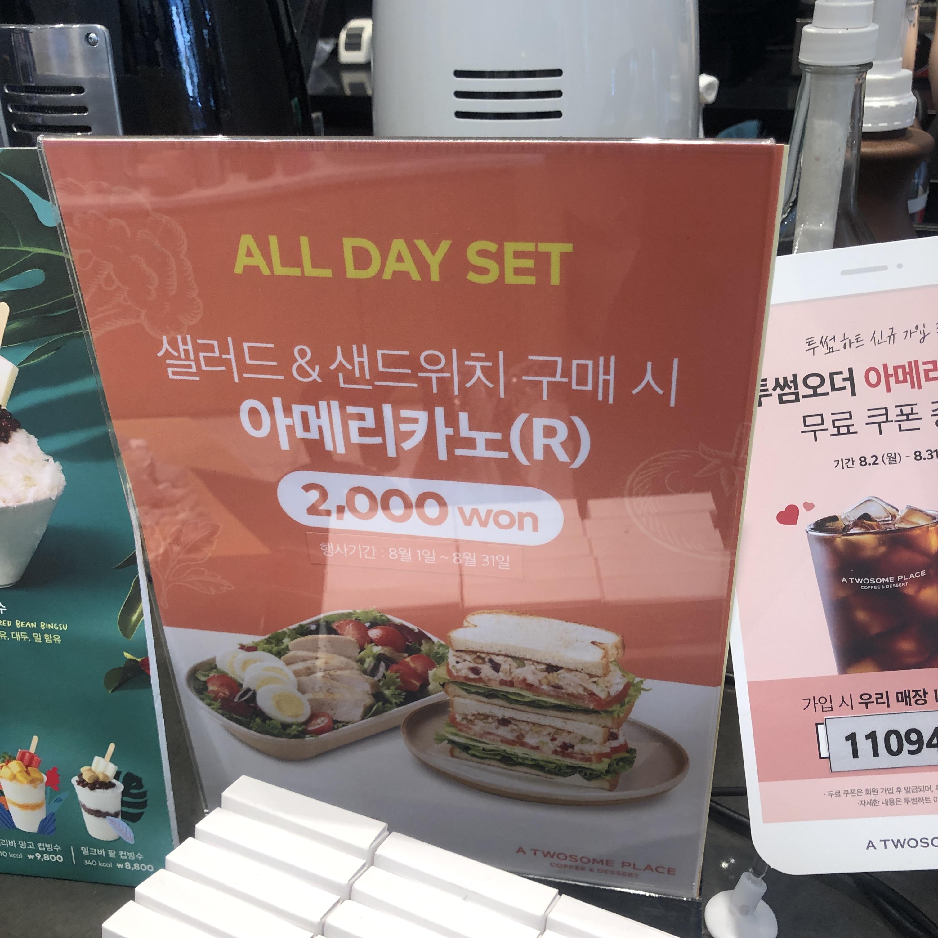 8월까지 샐러드,샌드위치 주문시 2,000원만 추가하면 커피도 드실 수 있어요 +_+